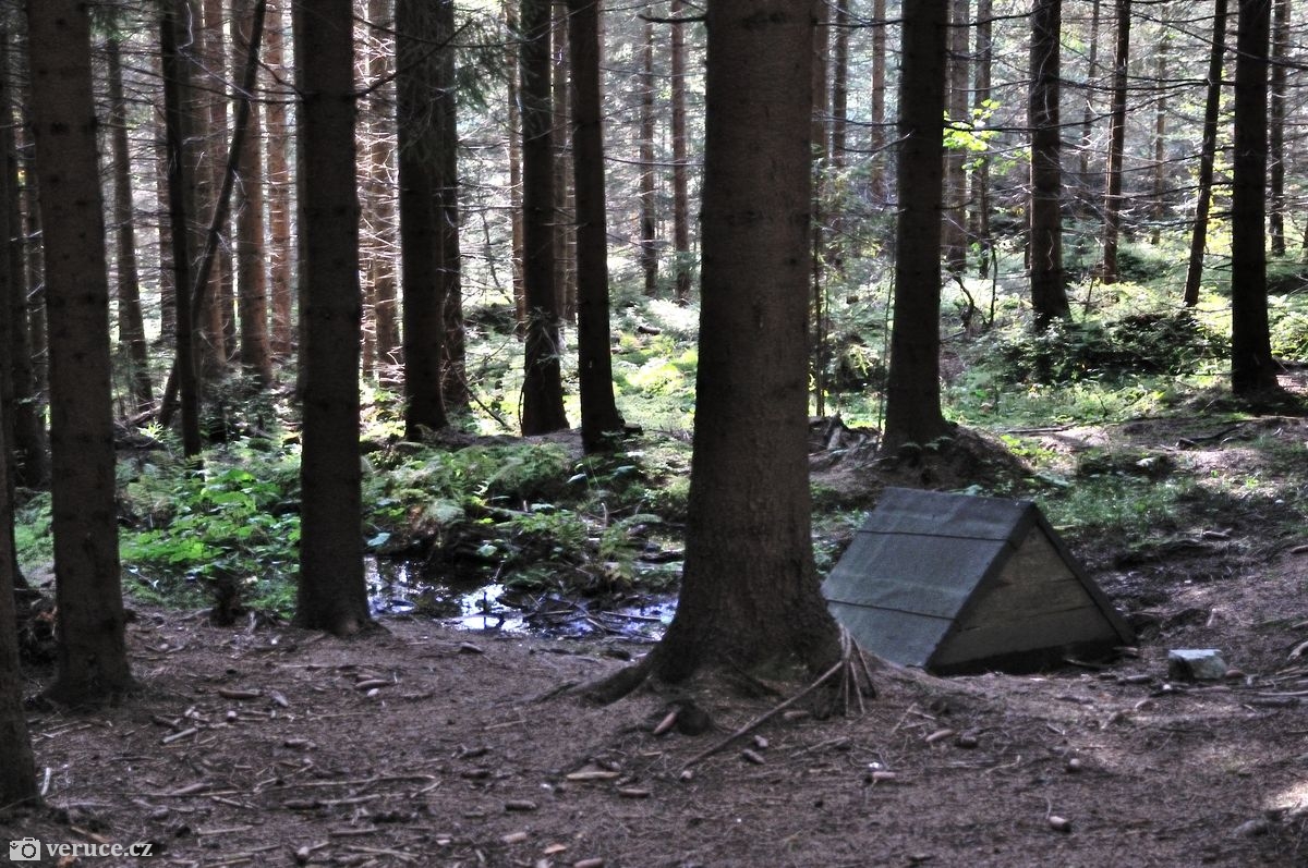 Kousek od rozcestníku Černá se dá zaparkovat a už není potřeba jít kus po silnici, abyste se dostali k turistické trase. Hezká cesta to ale není a nemůžu ji doporučit. Ačkoli jsme narazili na několik zákazů vjezdu, co pár minut jsme někomu uskakovali skoro do příkopu. Těšily nás ale krátké zacházky do lesa a ke studánkám. Navíc nás dopředu hnala vidina toho, že si nahoře na Súľově slaníme Vlčí skálu. To jsme ale žel vlivem nasčítaných drobných zdržení nestihli.