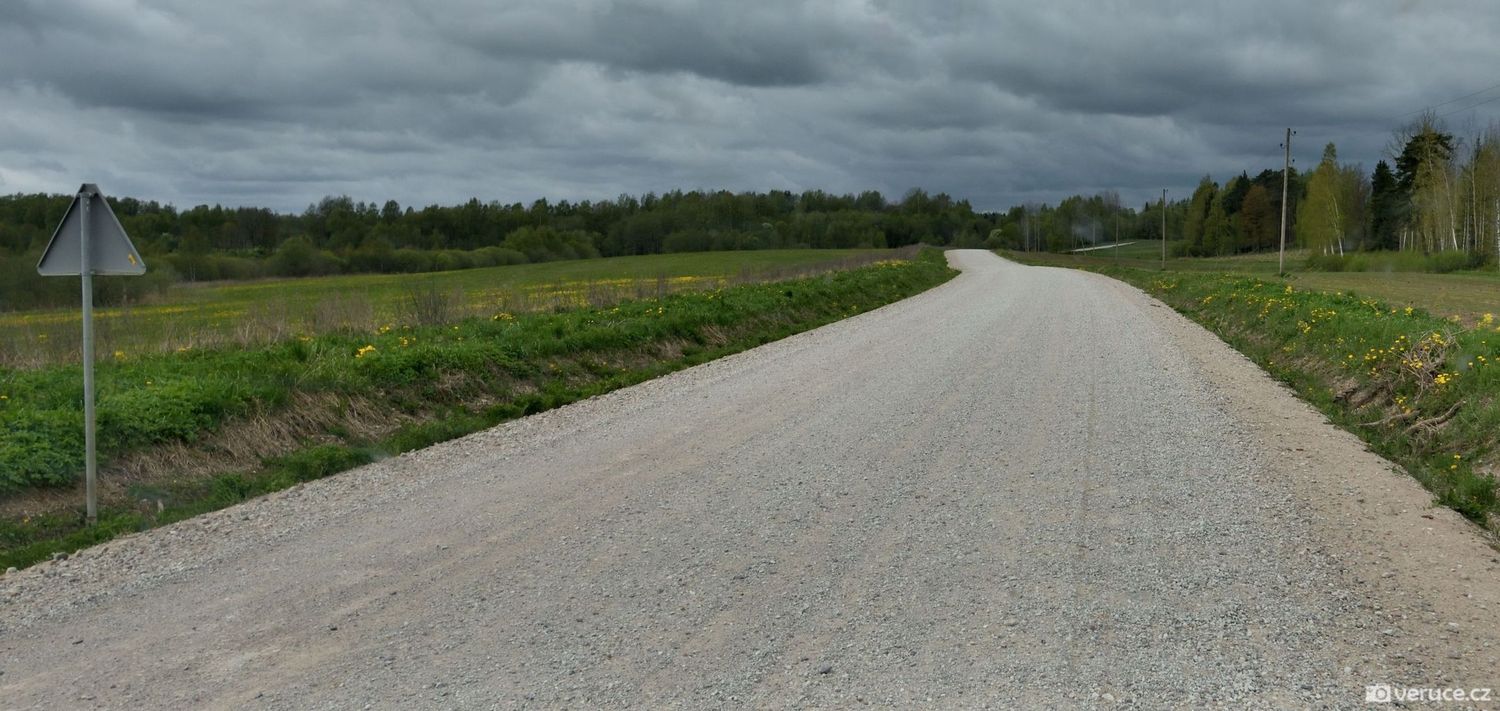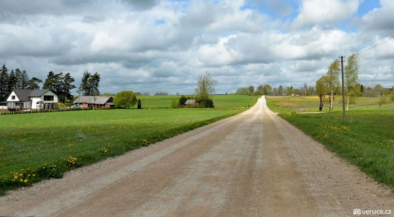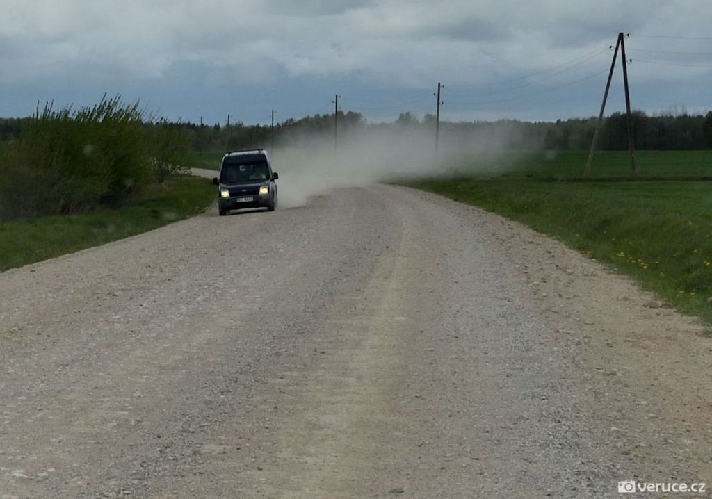 Dle cedule na hranicích je na tomto typu silnic dovoleno jet maximálně 80 km/h. Místní jsou na to zvyklí a opravdu jezdili výrazně rychleji než my. Každé auto doprovázel oblak prachu a kupodivu se nejednalo jenom o teréňáky. No, my máme naši dodávku rádi, raději jsme jeli pomalu. :D Z Embūte jsme pak nejkratší možnou cestou zamířili na hlavní tah ze Skrundy do Liepaji, který je naštěstí normální, tedy s asfaltovým povrchem.