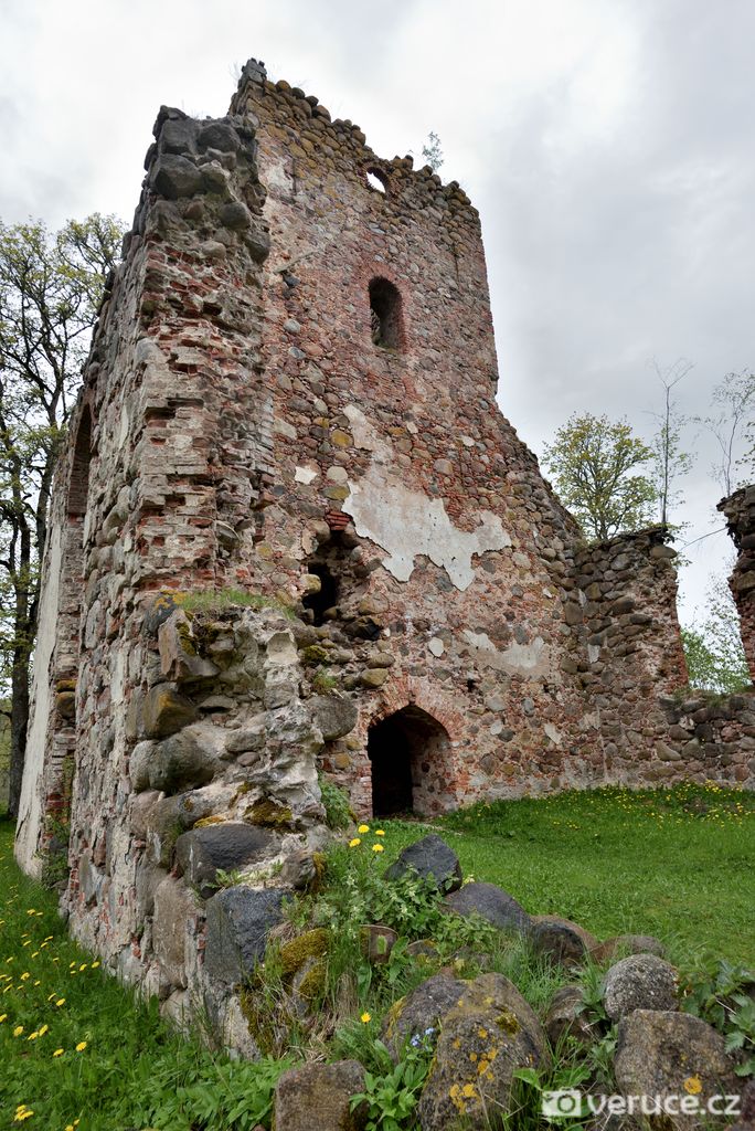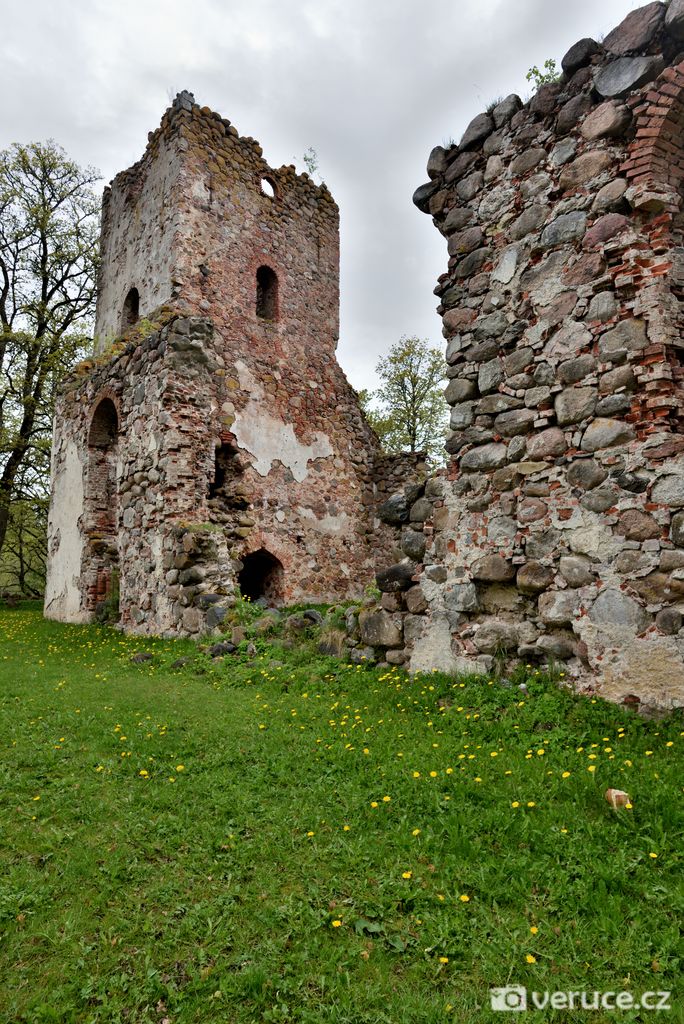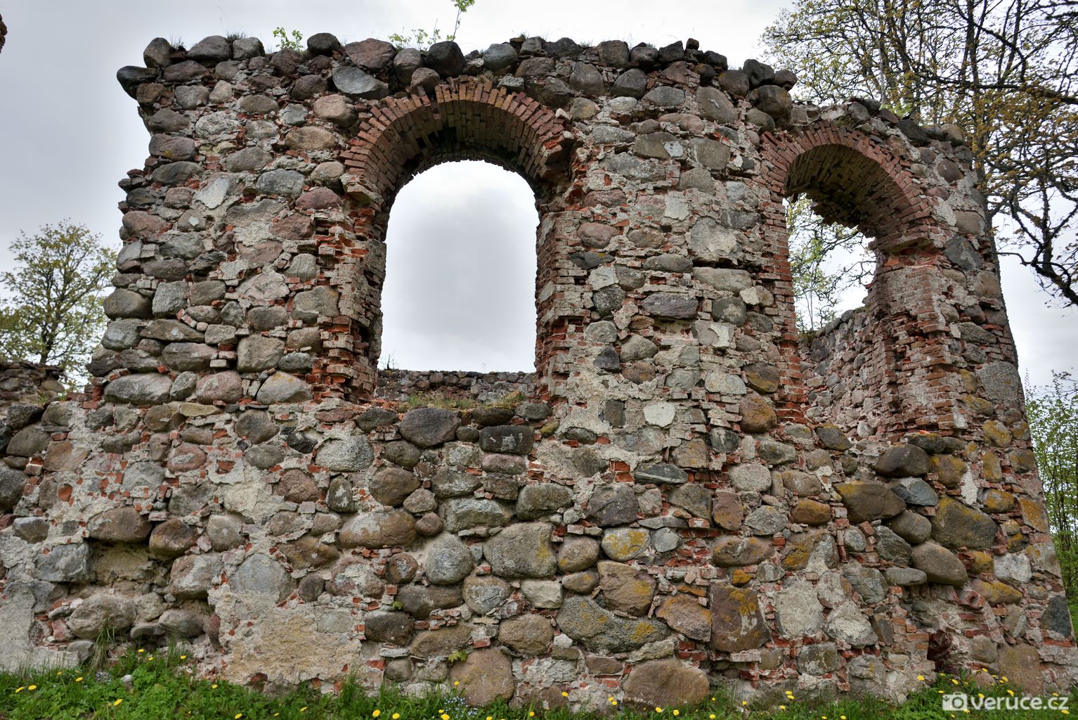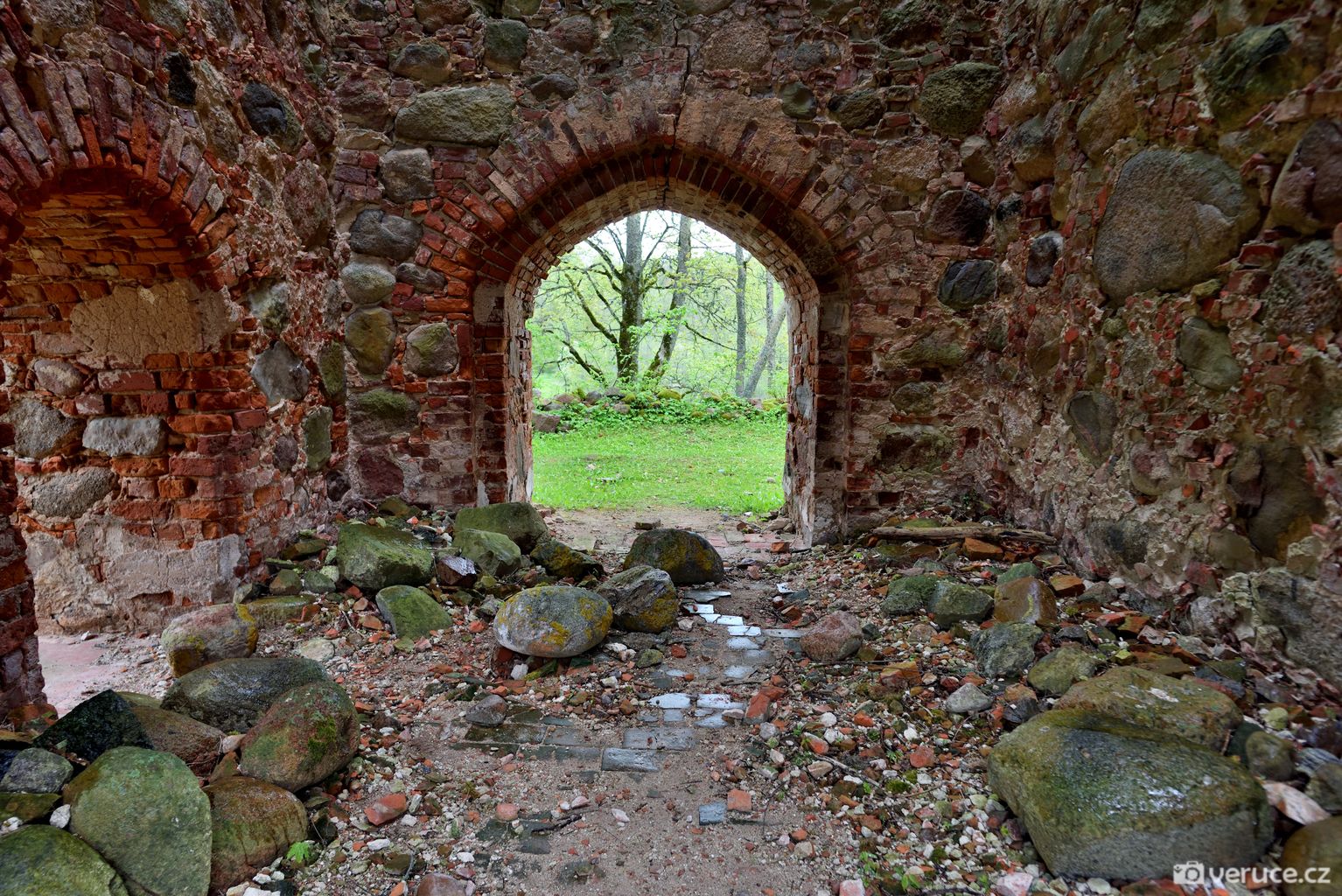 Zříceninu hradu Embūte (německy Amboten) jsme měli vyhlídnutou dopředu. Kamenný hrad nechal v druhé polovině 13. století postavit Konrád von Mandern, mistr Livonského řádu (autonomní větve Řádu německých rytířů), coby obranou pevnost proti nájezdům z Litvy. Předtím stálo o půl kilometru dál dřevěné hradiště. Od 16. století hrad postupně chátral a materiál stavby byl použit nejprve na stavbu panského domu a později na místní kolchoz.