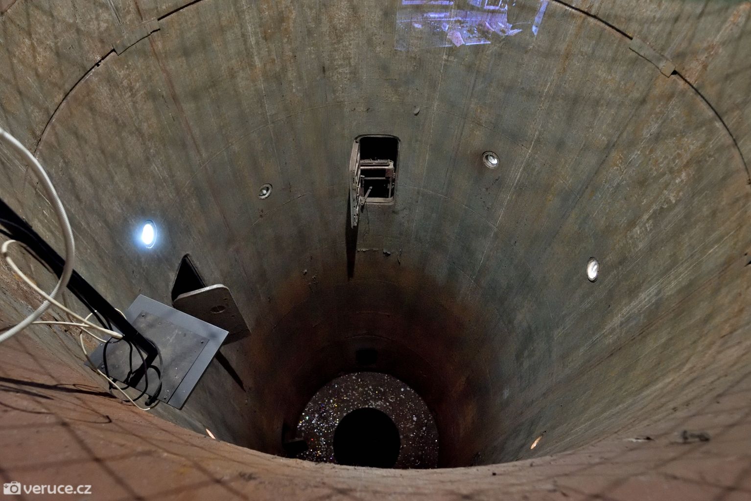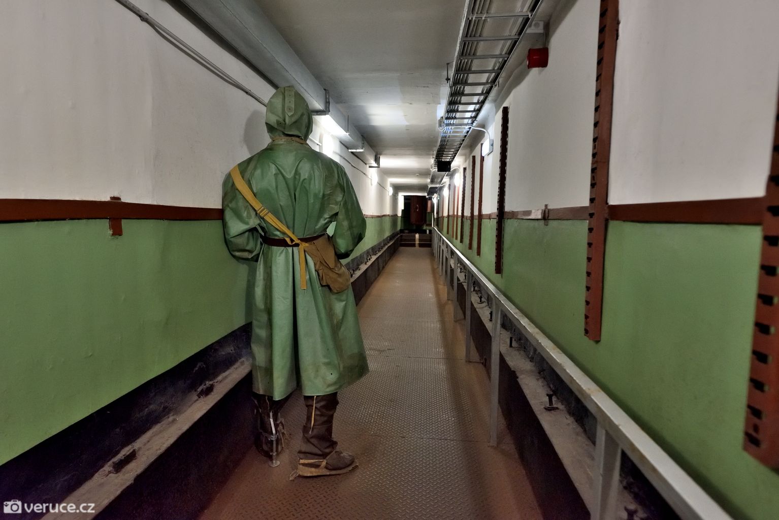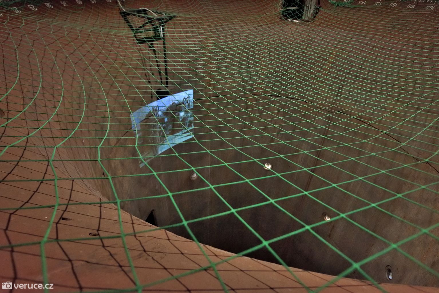 Tyhle “čepičky” jsou to jediné, co je z komplexu na povrchu vidět. Jedno ze sil je dnes v rámci Muzea studené války zpřístupněno. Jde se k němu dlouhou chodbou, kterou střeží jeden uniformovaný fešák. (Víte, že tohle slovo neznačí jen elegána, ale i vykastrovaného psa?) Na dalších fotkách je k vidění původní servisní přístup k samotné šachtě. Dá se jím bez problémů prolézt i s těhotenským břichem, ale pro ty, co se nechtějí protahovat úzkým průlezem, se tu najde i nově zbudovaný a méně náročný vstup. :) Následují záběry na samotné silo, které je dnes chráněno sítí. Ta sice brání pádu návštěvníků dolů, už je ale málo platná proti obecnému nešvaru do každé ďoury házet mince. Ještě to celkem chápu u fontán a studánek, kde to má být pro štěstí, ale tady nebo třeba ve výběhu aligátora fakt ne.