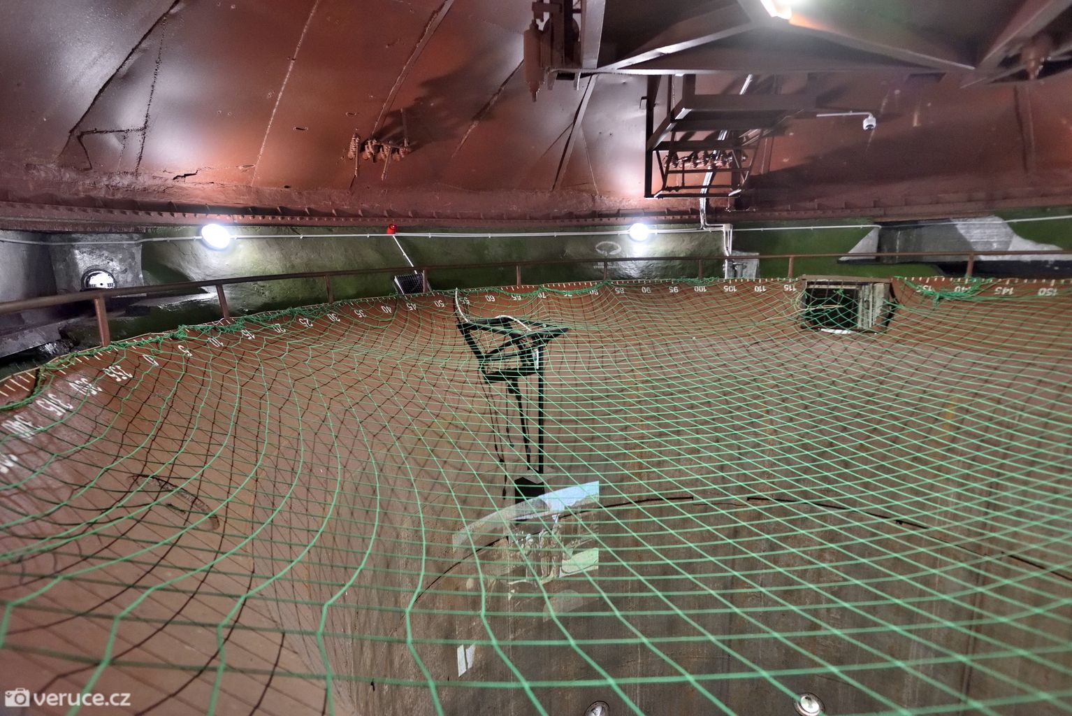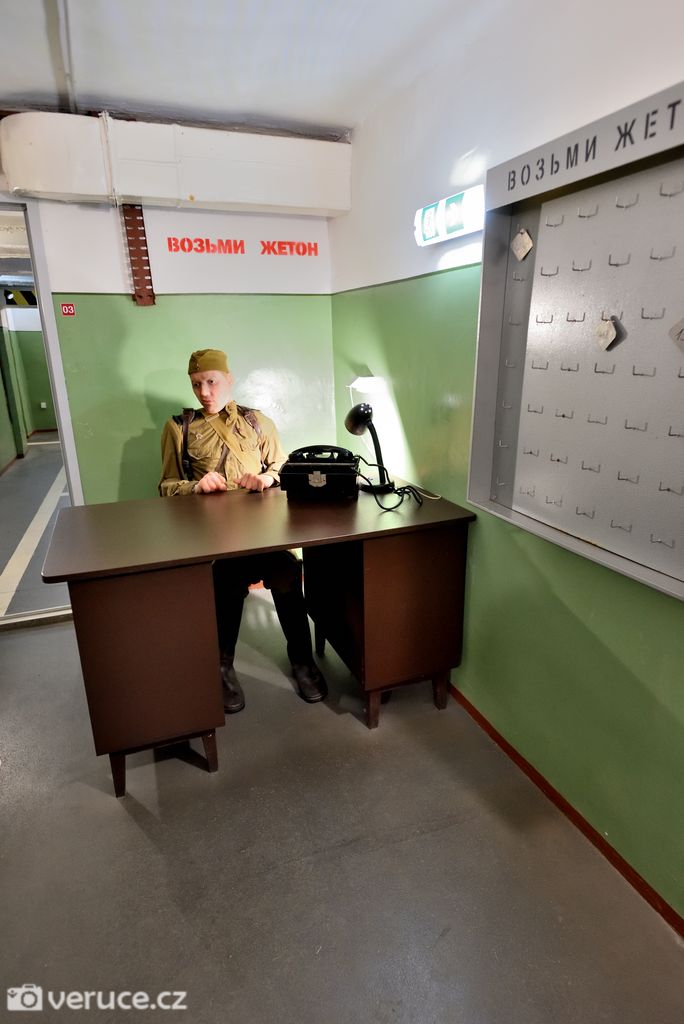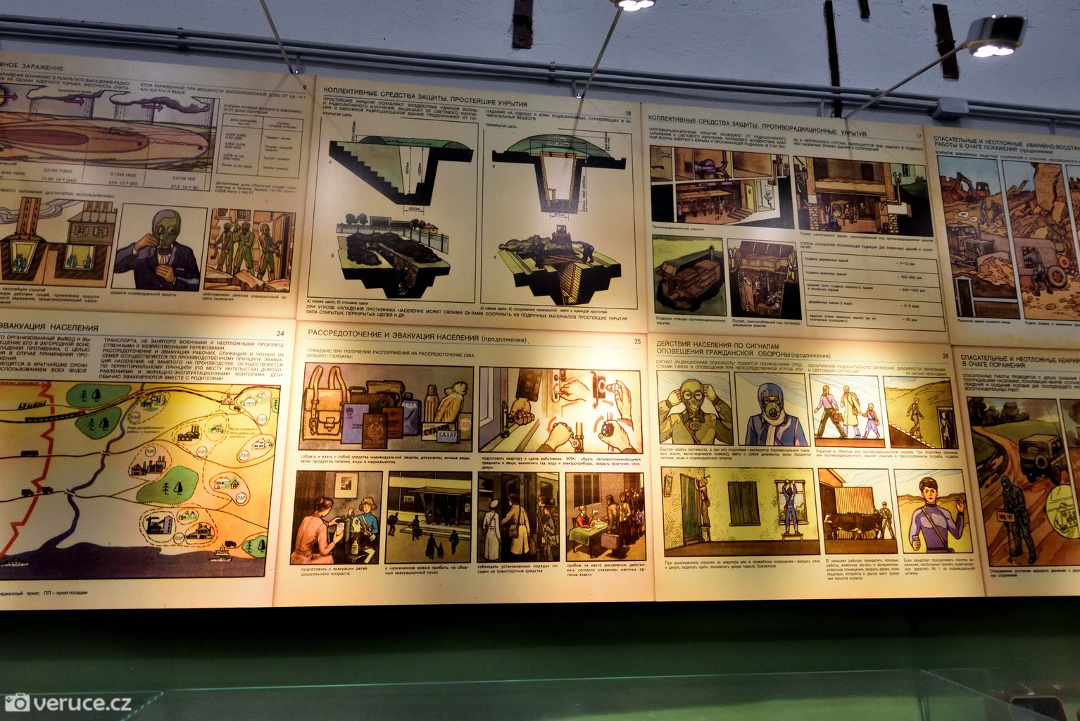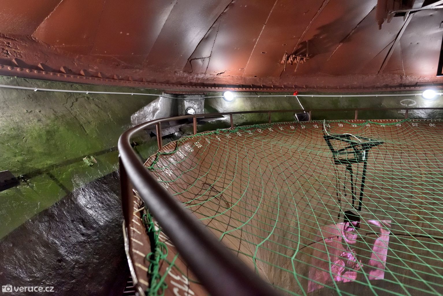 Tyhle “čepičky” jsou to jediné, co je z komplexu na povrchu vidět. Jedno ze sil je dnes v rámci Muzea studené války zpřístupněno. Jde se k němu dlouhou chodbou, kterou střeží jeden uniformovaný fešák. (Víte, že tohle slovo neznačí jen elegána, ale i vykastrovaného psa?) Na dalších fotkách je k vidění původní servisní přístup k samotné šachtě. Dá se jím bez problémů prolézt i s těhotenským břichem, ale pro ty, co se nechtějí protahovat úzkým průlezem, se tu najde i nově zbudovaný a méně náročný vstup. :) Následují záběry na samotné silo, které je dnes chráněno sítí. Ta sice brání pádu návštěvníků dolů, už je ale málo platná proti obecnému nešvaru do každé ďoury házet mince. Ještě to celkem chápu u fontán a studánek, kde to má být pro štěstí, ale tady nebo třeba ve výběhu aligátora fakt ne.