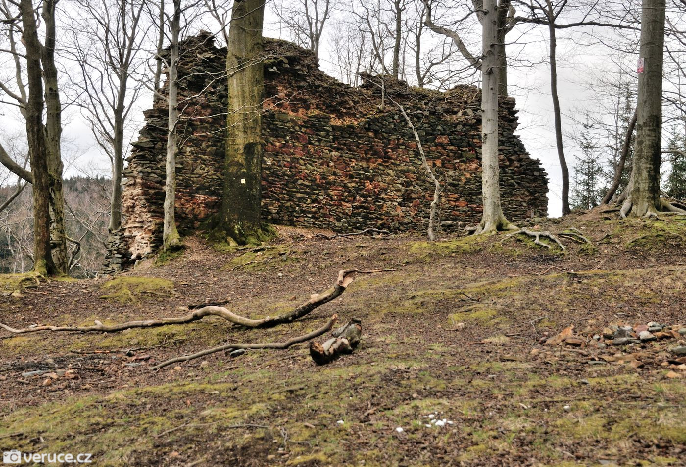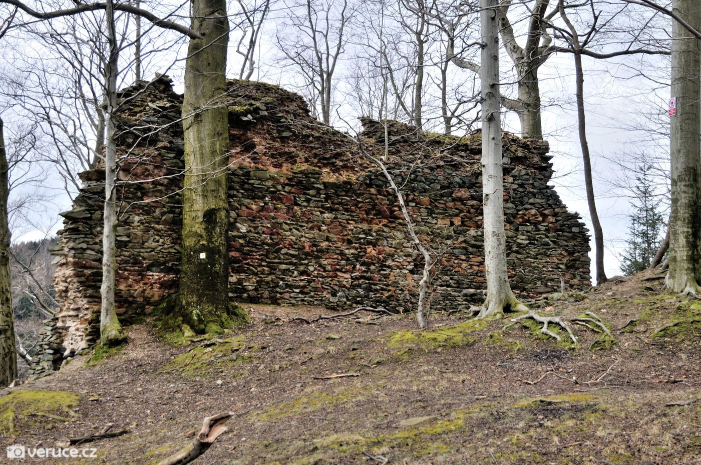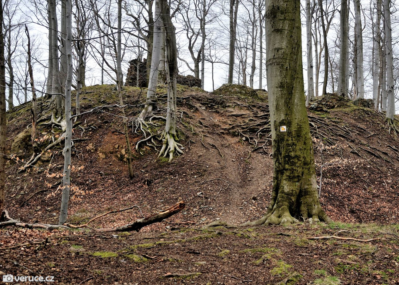 - A proč to? My se k hradu vydali od Západní jeskyně, kde jsme pobývali s přáteli jeskyňáři. K tomuto místu se nedá legálně vyjet autem, to je potřeba nechat nejdál dole u silnice mezi Chrastavou a Jitravou. Na Roimund se dá vyrazit hned z několika míst a já vybrala dvě možnosti, které mají k té naší nejblíže.
